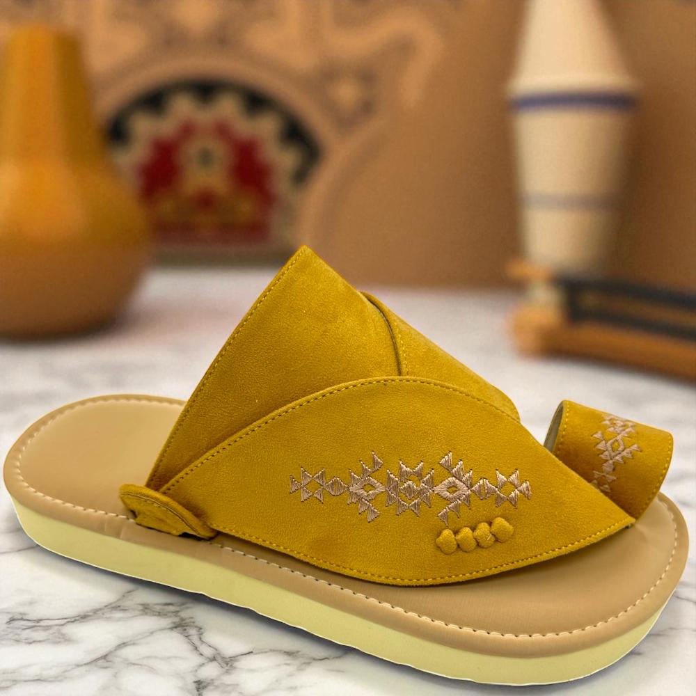 - تطريز يدوي دقيق: النقوش المطرزة على الجزء العلوي من الحذاء تتميز بدقتها، مما يمنحه مظهرًا فريدًا ومتقنًا.