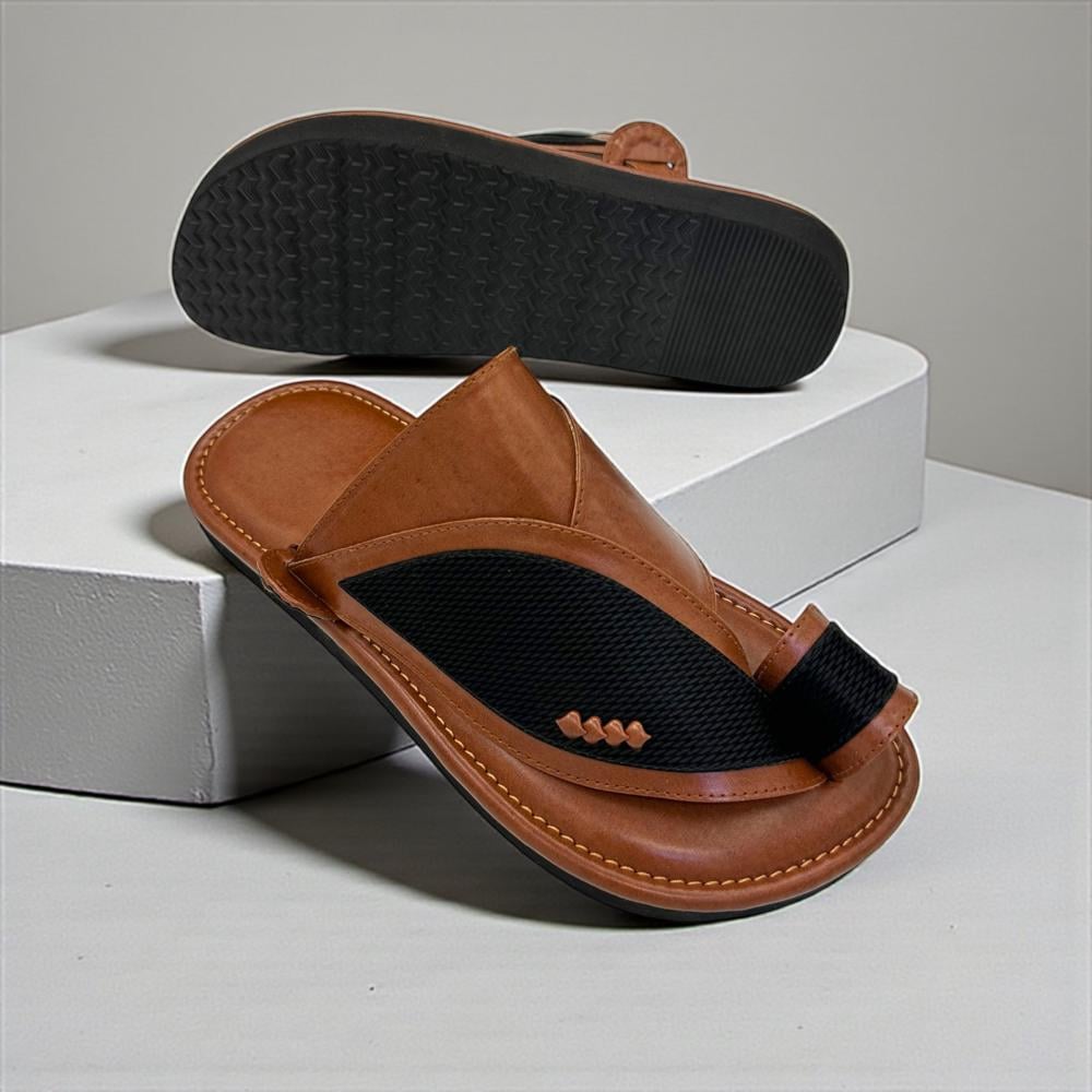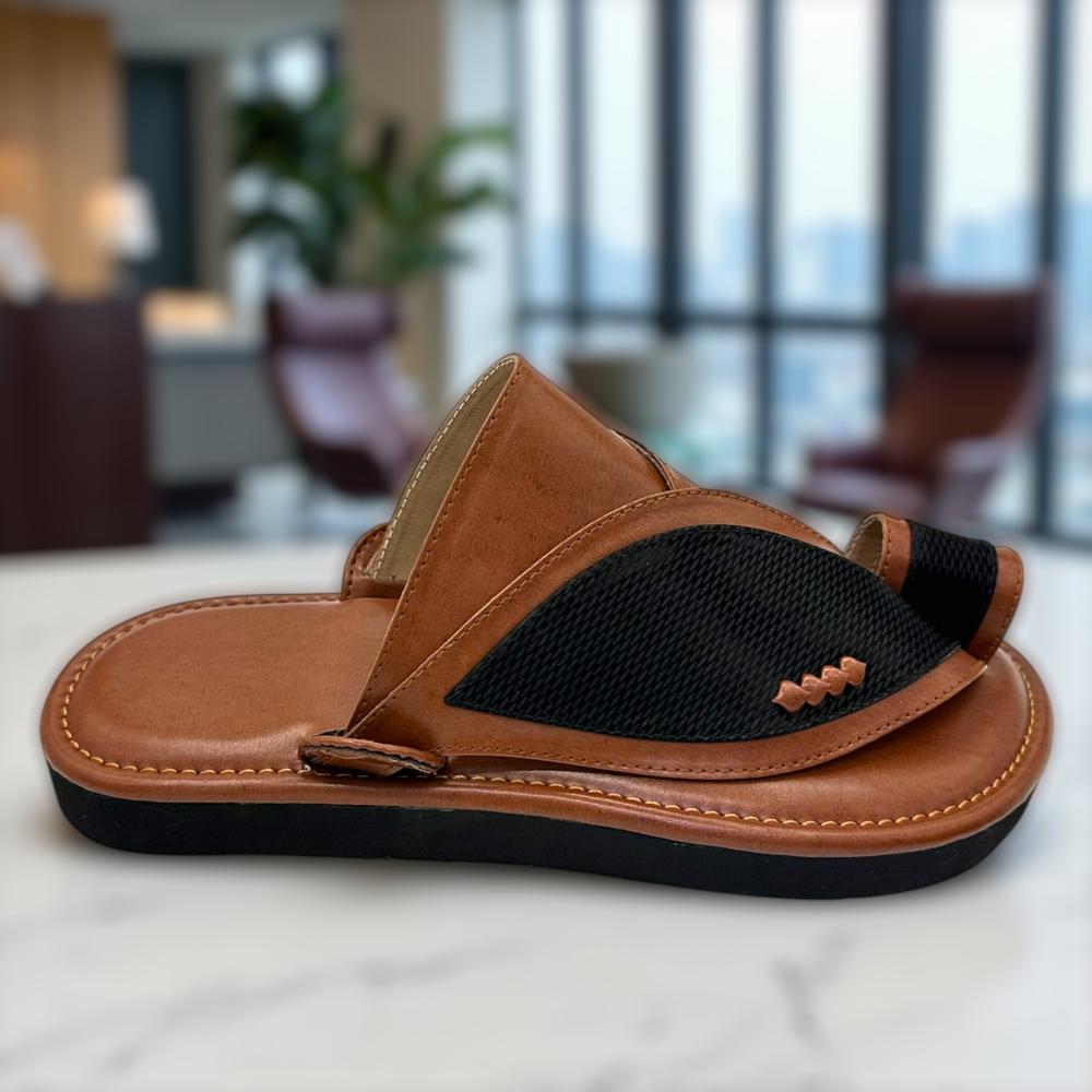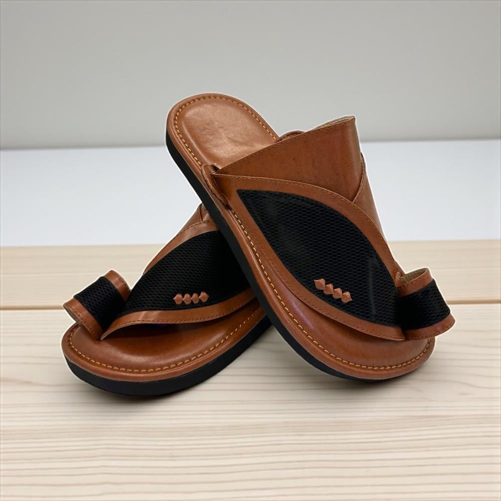 - تناسق لوني كلاسيكي بين البني والأسود يجعله خيارًا متعدد الاستخدامات وسهل التنسيق مع مختلف الملابس الرجالية.