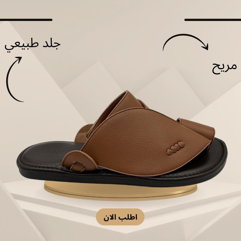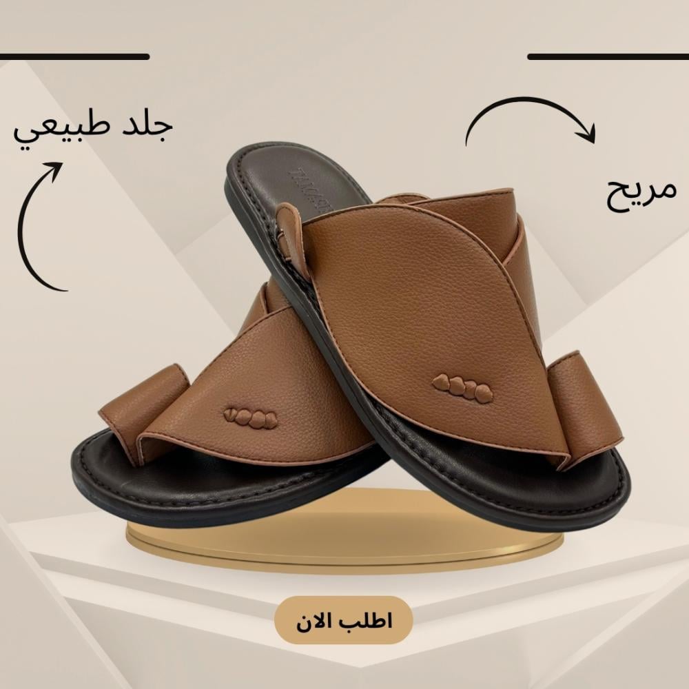 صُنع هذا الحذاء الرجالي من الجلد بدرجات البني الغنية، ليعكس روح الرجولة والأناقة المستوحاة من التراث النجدي. يتميز بتصميم فريد يجمع بين الراحة والبساطة، مع حزام عريض يعبر أعلى القدم وحلقة أنيقة للإصبع تمنح ثباتًا إضافيًا وأناقة متفردة.